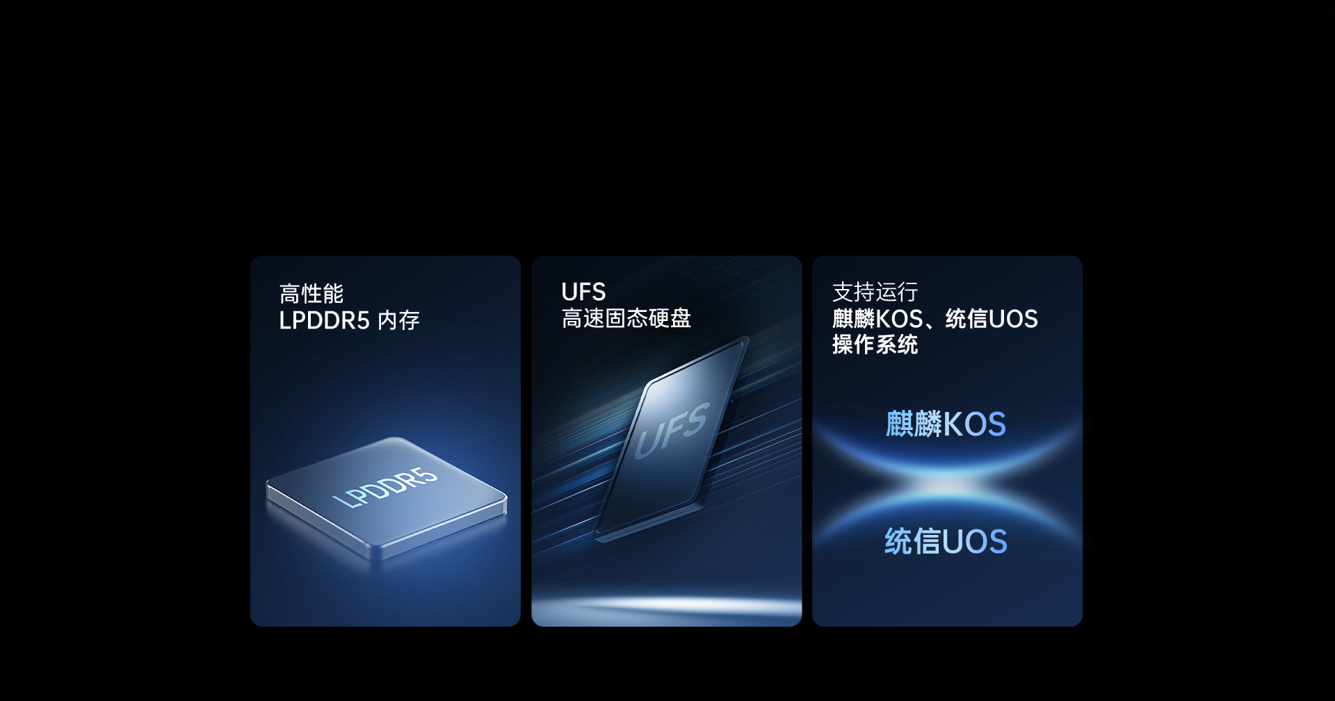 接纳高性能LPDDR5 内存,,,,,内置UFS高速固态硬盘,,,,,集高性能、高清静、高可靠性于一体