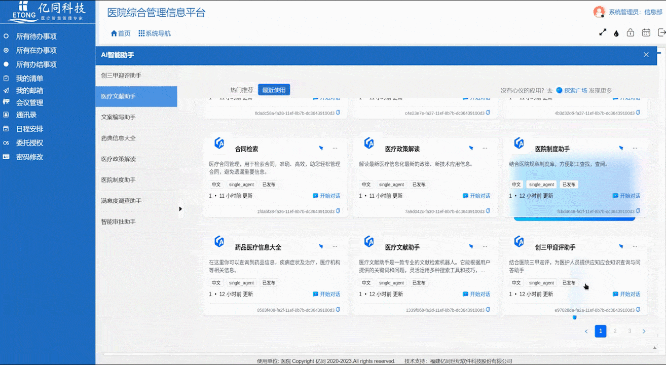 融合DeepSeek-R1的医院智慧管理信息平台具备智能应用体创建功能,在“医疗文献问答、创三甲迎评助手、智能审批、制度管理”四个场景为医院提供智能化应用,让医院实现从“数字化”到“数智化”的转型。