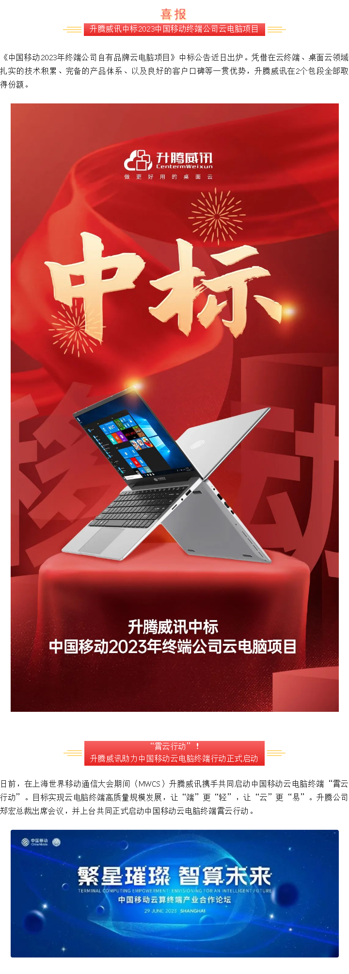 喜报!凯时ks威讯中标2023年中国移动云电脑项目,,,,,,,,助力宣布“霄云行动”