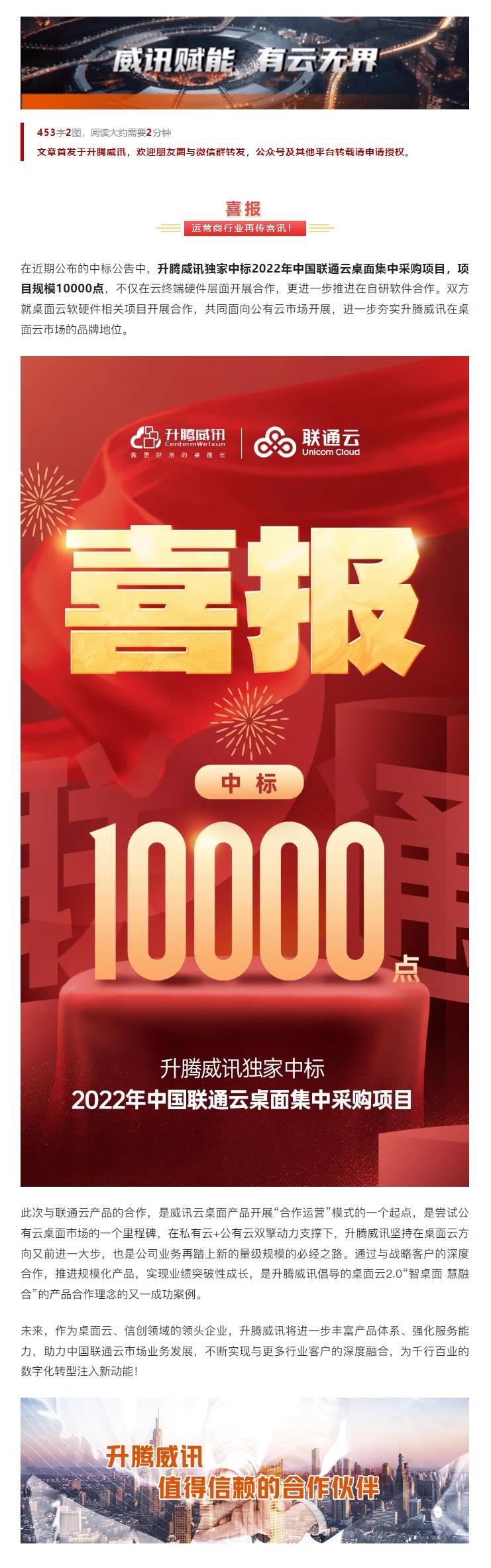 中标10000点!凯时ks威讯独家中标2022年中国联通云桌面集中采购项目