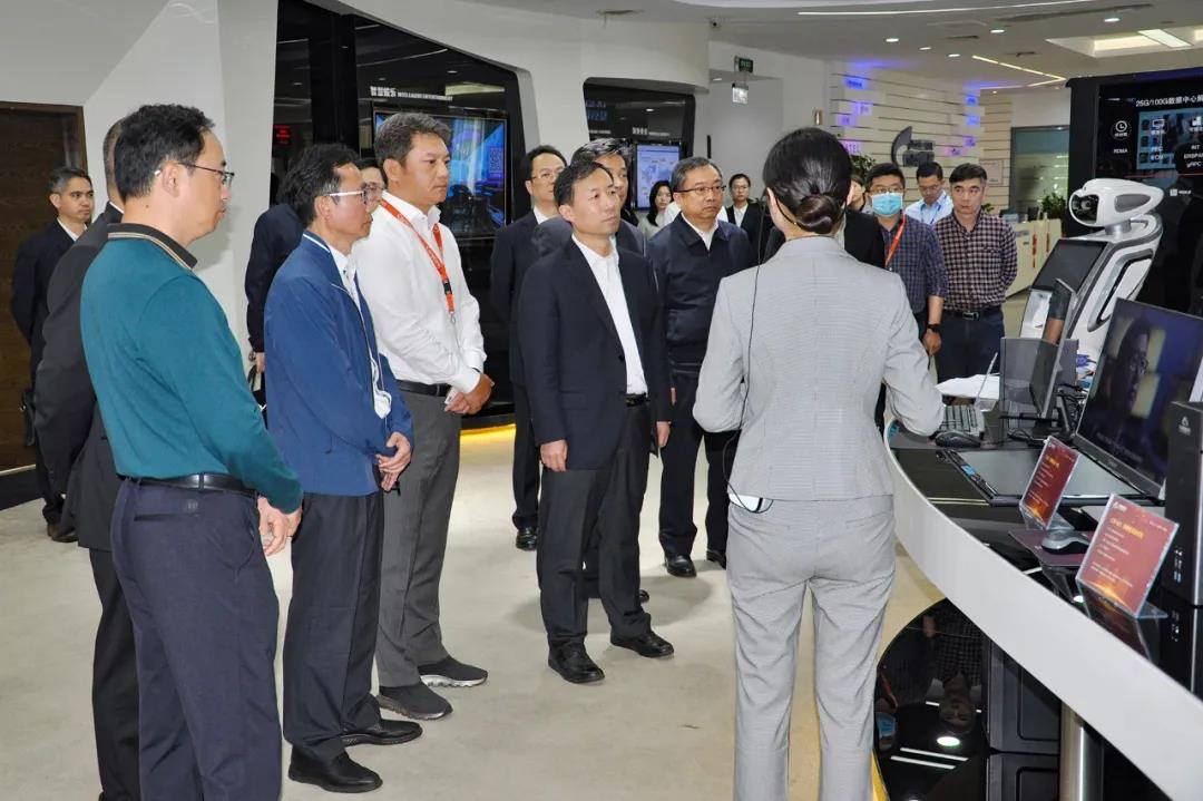 王志军一行参观了集团智慧展厅,郑宏总裁介绍在国产自主创新、知识产权体系建设与保护和参与新基建建设等方面的工作情况,对星网锐捷保持战略定力、打造自主创新和产学研合作的技术创新体系、持续加大研发投入、完善知识产权保护机制、建设人才强企等方面的成效给予了高度肯定;