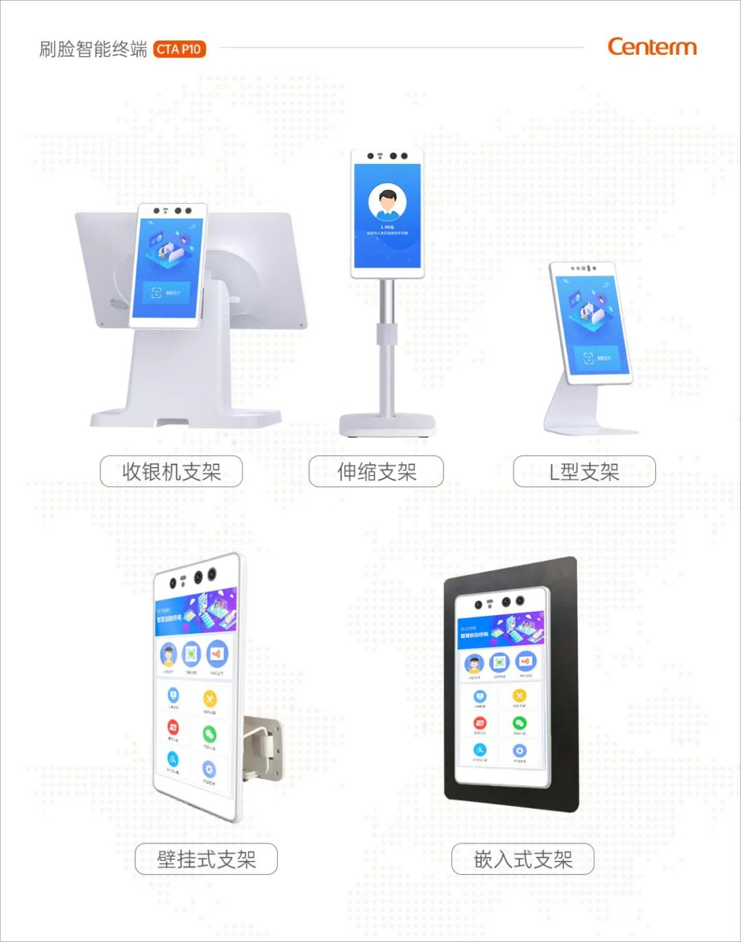 P10拥有伸缩立式杆、L型支架、一体化收银机组合、壁挂支架、内嵌式支架等多种终端形态,自定义最佳刷脸角度,灵活适配各种交易场景。深度定制的Android系统,完美搭载各类收银软件,操作顺滑,运行流畅。此外,隐藏式的各类外部接口(USB、UART、DC等),全面支持密码键盘等各类收银设备,即插即用,方便快捷。更有智能双屏交互,促进商户和顾客实时互动,提升收银效率。