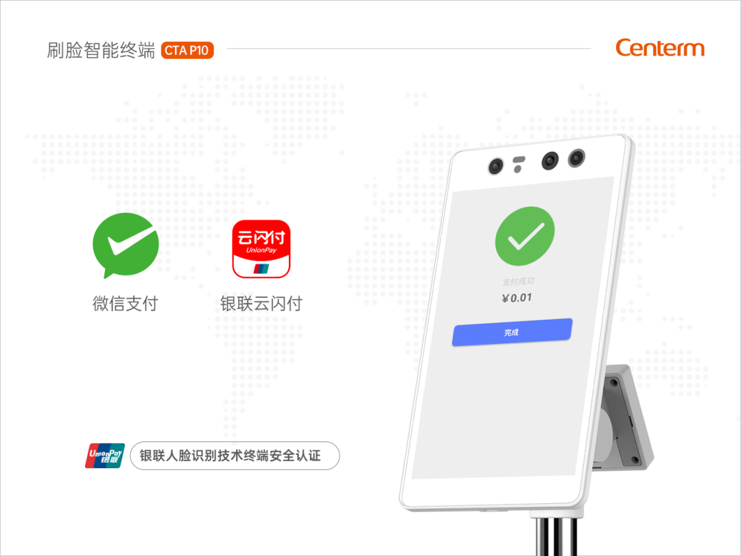 作为业内最早通过银联人脸识别技术终端安全认证的支付终端之一,P10符合国家认证的金融支付级安全标准,倾力护航每一笔支付交易。它采用金融级3D结构光摄像头和超级人脸算法,能快速准确完成人脸识别和刷脸支付,有效抵御照片、视频或者面具等伪造及盗刷情况,识别率超过了99.99%。尤其值得关注的是,P10既能刷脸也能扫码。它不仅率先实现银联刷脸支付、微信刷脸支付,同时还支持银联、微信、支付宝等聚合扫码。