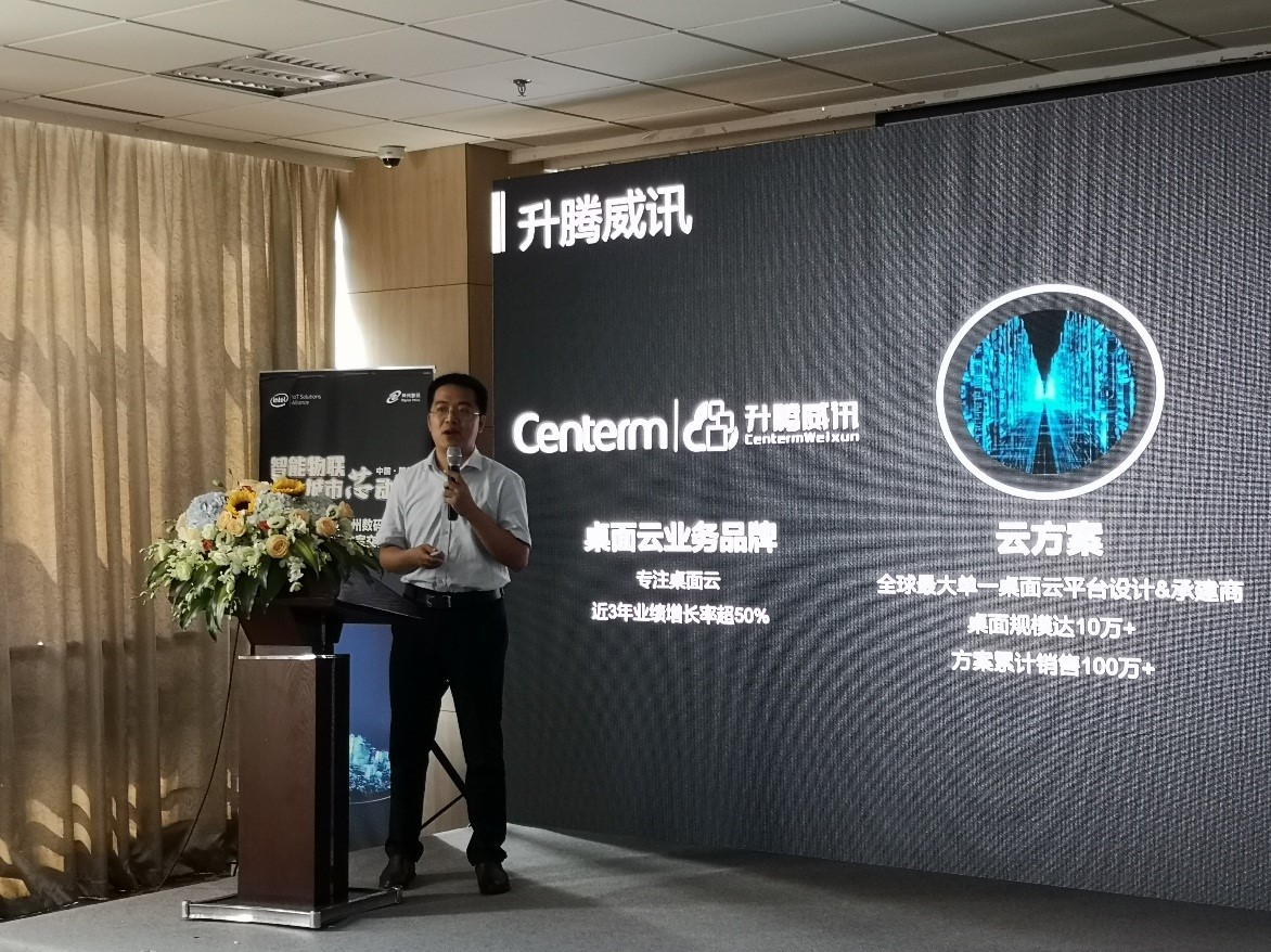 升腾作为国内领先的桌面云厂商,同时也是英特尔物联网高级特别联盟成员,作为唯一受邀的桌面云厂商参加了此次研讨会,生态威讯云方案产品经理 陈欣 围绕“桌面云2.0 智桌面,慧融合”主题宣讲,介绍升腾在教育信息化领域的创新研究及发展愿景。