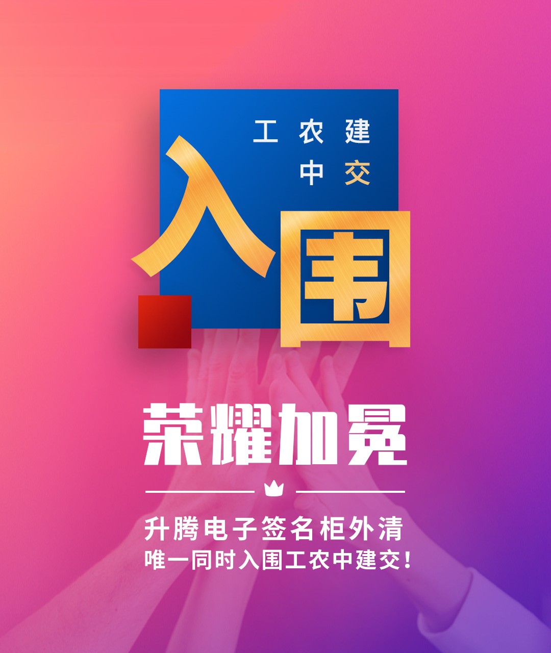 升腾是业内唯一一家同时入围工、农、中、建、交电子签名柜外清项目的企业,拥有丰富的批量部署经验。