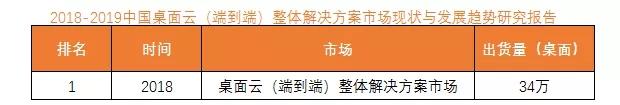 2018年在市场上取得了质的突破,持续领跑国内桌面云市场: