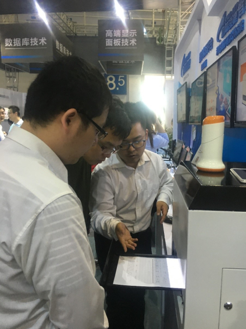 河南省工商局领导等与会嘉宾亲临展台参观并体验政务服务机器人,对升腾资讯在政务领域的最新成果表示了高度评价。