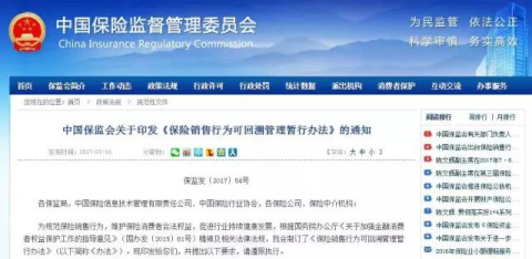 此外,早在7月10日,保监会在官方网站发布消息称:为进一步规范保险销售服务行为,切实优化保险消费环境,正式发布《保险销售行为可回溯管理暂行办法》,办法自2017年11月1日起全国实施。这意味着保险业“双录”时代正式到来。
