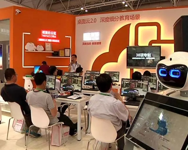 智能云技术和教育碰撞在一起,会产生怎样的火花呢?这次教育装备展示会里,不少厂商就交出了自己的答卷。比如我们省的升腾资讯公司,他们把一套完整的云教室系统搬进了展位里,给参观者演示了云端同步开机、同步维护等先进功能。
