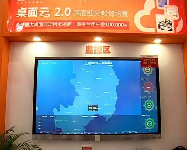 在展台的另一边,一个名为云学区的显示器吸引了不少人的目光。工作人员告诉记者,云学区是国内第一款针对区县级教育系统量身定制的教育桌面云产品。它最大的特点是,以区县为单位部署数据中心,为区域内所有学校提供教学桌面和办公桌面,能够最大化的实现教育资源共享。