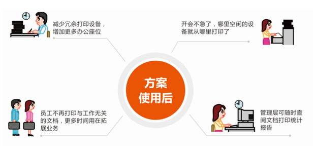 池化打印机资源,用户随时随地就近打印,用户提交打印任务后,自由选择刷卡打印;同时,统一PC、云桌面、iOS、Android等夸平台打印体验。