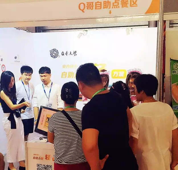 Q哥点餐一经亮相便成为展会的一大亮点,凭借快捷和新潮的自助点餐模式,吸引众多餐饮经营者、投资者和外国友人等行业人士前来参观。在展会现场,参观者排成长龙争相体验自助点餐。众多餐饮经营者在体验Q哥自助点餐服务后,纷纷点赞并表现出浓厚的合作兴趣,现场便签约订购,场面异常火爆。