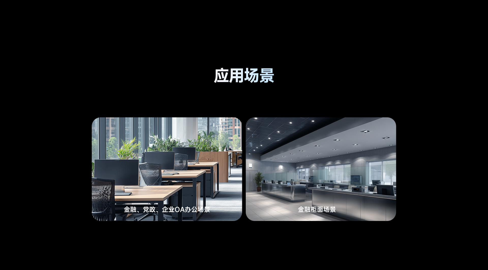 知足党政、金融等要害领域的高清静办公需求,,,,,实现 “自主可控、清静可信” 的双重包管