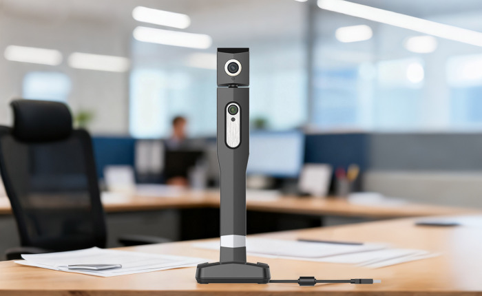双摄像头在统一立柱上,,,,,划分朝向柜员和储户,,,,,整体形状雅观大方 |