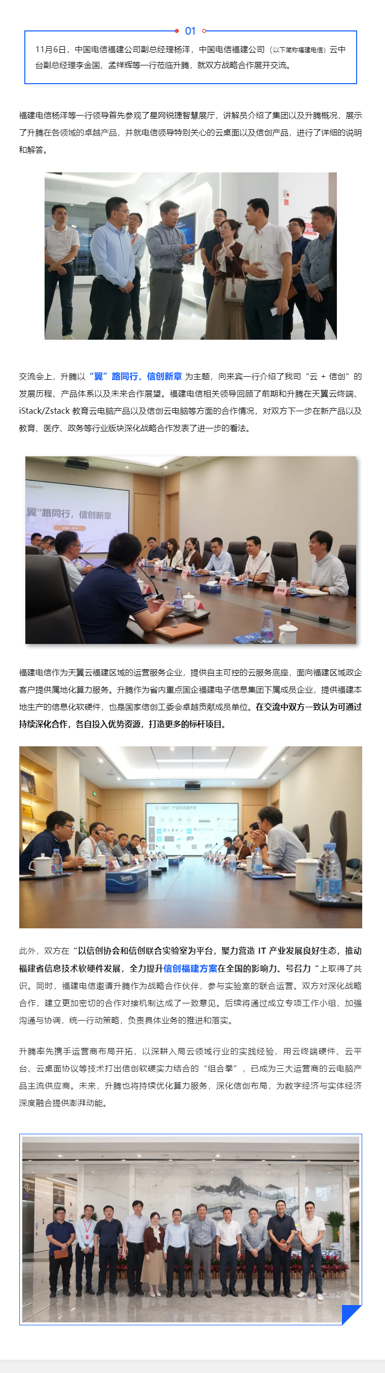 中国电信福建公司副总司理杨洋一行莅临凯时ks开展战略合作交流
